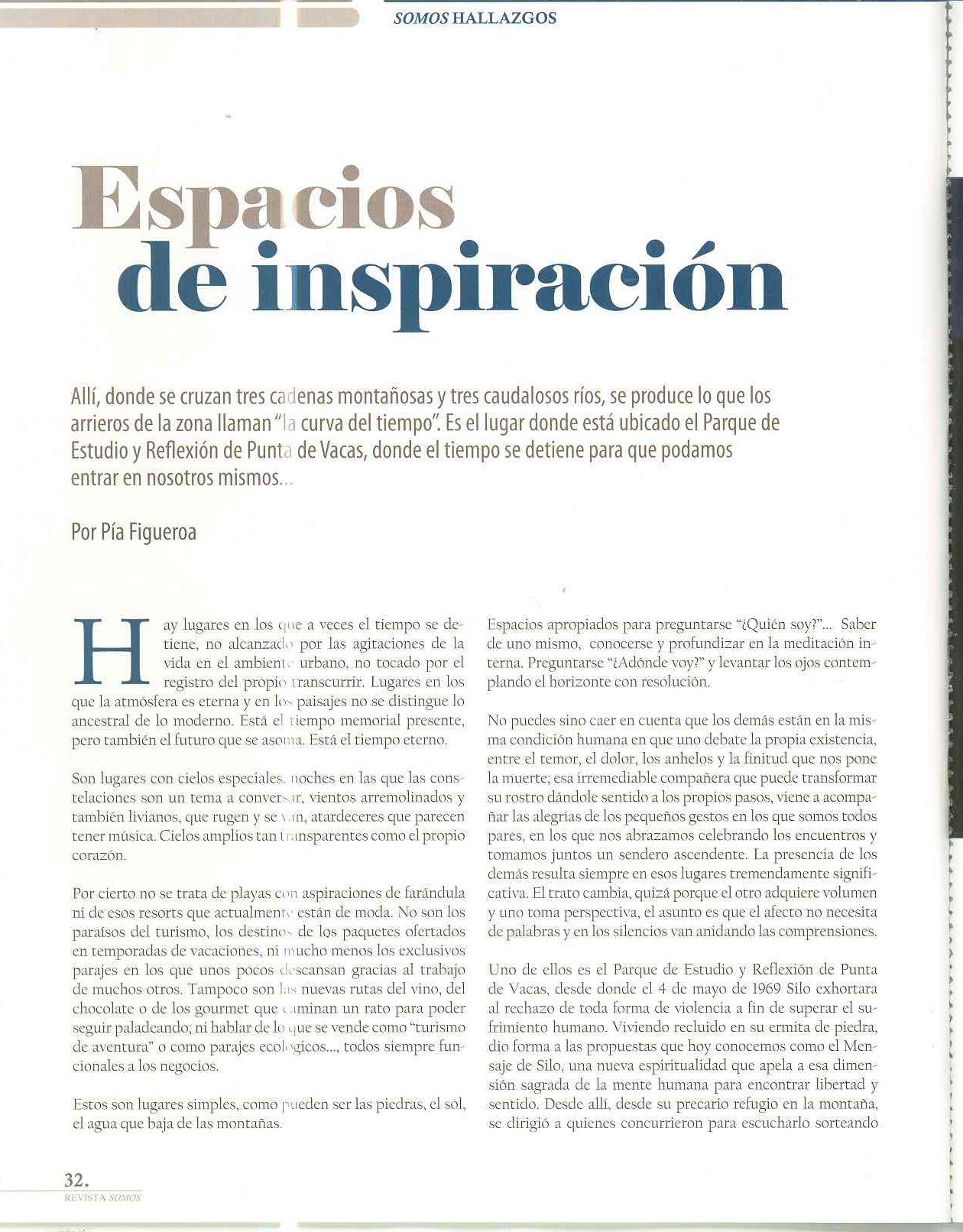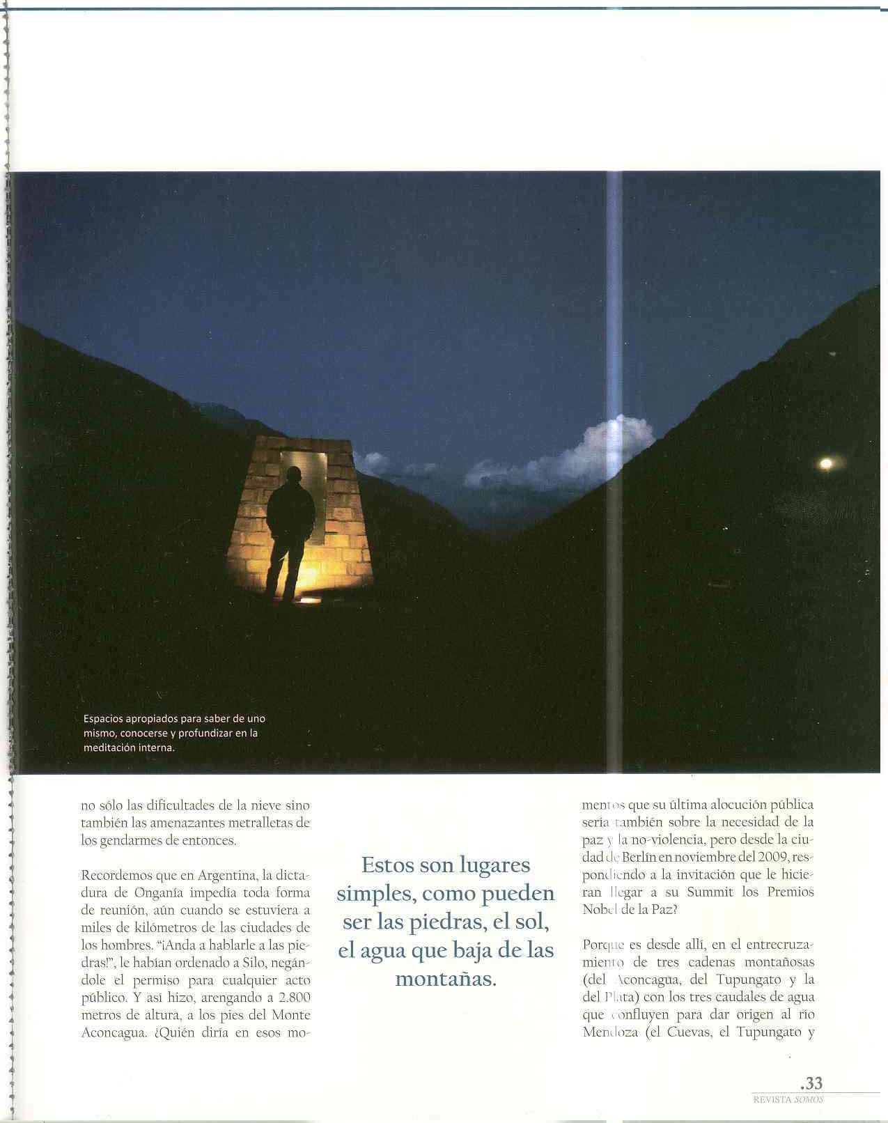 "Allí, donde se cruzan tres cadenas montañosas y tres caudalosos ríos, se produce lo que los arrieros de la zona llaman "la curva del tiempo". Es el lugar donde está ubicado el Parque de Estudio y Reflexión de Punta de Vacas, donde el tiempo se detiene para que podamos entrar en nosotros mismos."